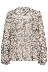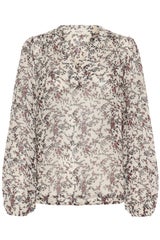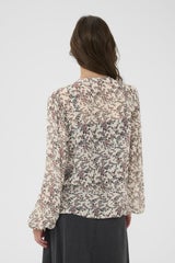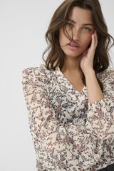 Kukkakuvioinen viskoosi paita puhvihihoilla. Paidassa v-kaula-aukko.