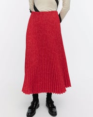 Myy-pliseehameessa on rento istuvuus, A-linjainen leikkaus ja Piirto Unikko -kuosi. Hameessa on leveä helma ja kuminauhavyötärö.