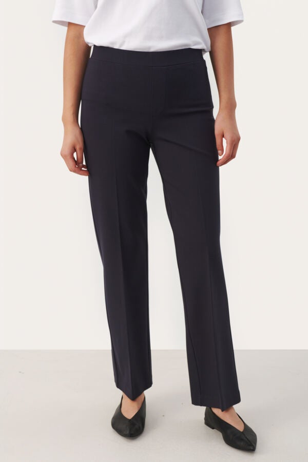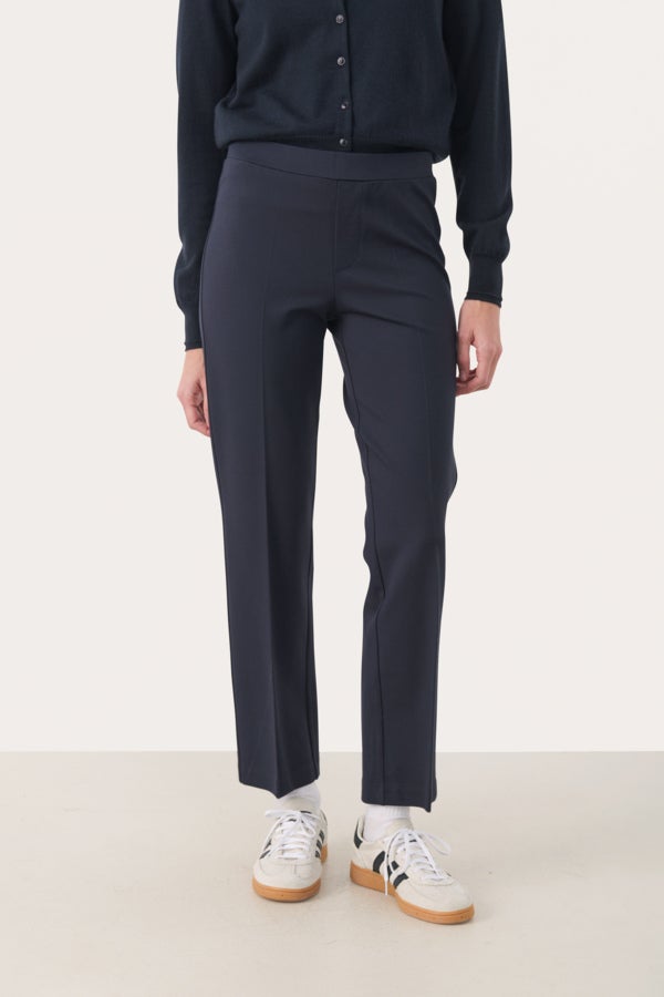 Super joustavat ja napakat tummansiniset housut jossa vyötäröllä leveä kuminauha resori.