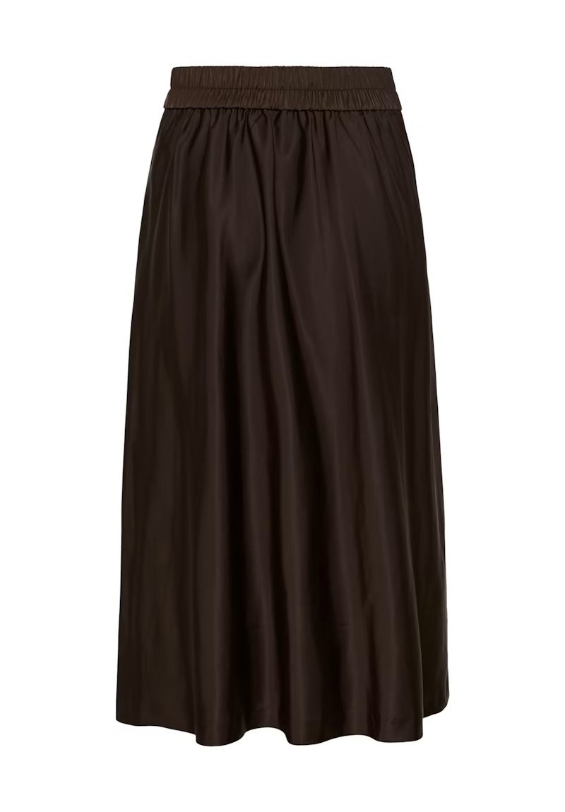 Tyylikkään Zilky hameen vyötäröllä on joustava kuminauha selkäpuolella ja sivuissa taskut. Hame levenee kevyesti alaspäin.